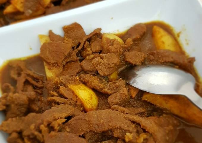 - 2 butir kentang kupas dan potong dadu 15 x 15 cm. Cenplungkan cabe rawit belondongAnMasak hingga semua kuah habis dan kental. Jika daging belum lunak tambahkan sedikit air panas dan teruskan merebus.