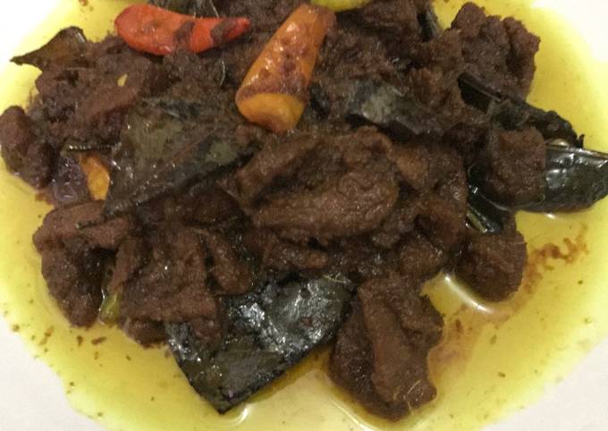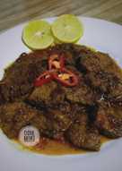 Jika daging belum empuk tambahkan sedikit air kembali dan masak hingga daging menjadi empuk dan kuah habis. Garam dan merica secukupnya. Bukan daging gulung yang tebal berkuah dan berbumbu pekat.